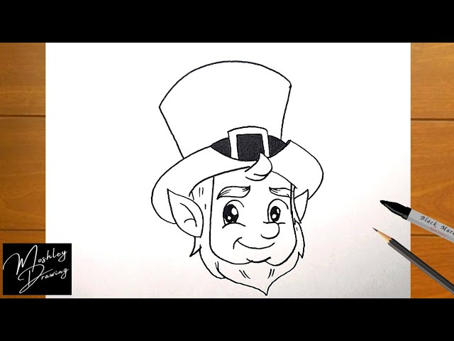 . This is a shorter more simplified drawing video for young children. Continue the left side of the brim. Right underneath the leprechauns face draw the collar of the suit.
